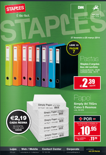 folhetos Novo folheto Staples de 27 fevereiro a 25 março radardosdescontos, 28.02.14 Saiba mais aqui Tags:folhetos link do post comentar favorito Mais para ler